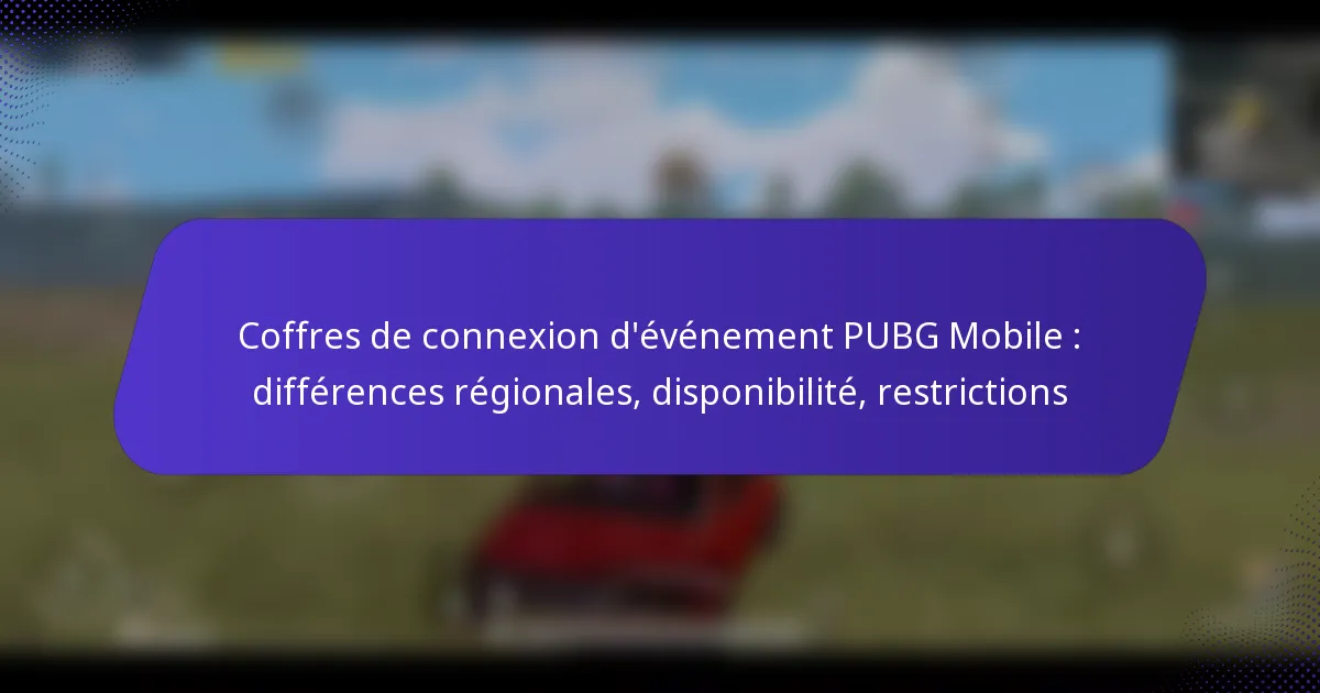 Les caisses de connexion d’événements PUBG Mobile sont des récompenses exclusives que les joueurs obtiennent en se connectant au jeu pendant des événements désignés, offrant des objets précieux en jeu qui améliorent l’expérience globale. Cependant, les différences régionales peuvent affecter de manière significative le contenu et la disponibilité de ces caisses, les joueurs recevant des récompenses variées en fonction de leur emplacement. De plus, des restrictions telles que les critères d’éligibilité, les délais et les limitations géographiques jouent un rôle crucial dans la détermination de qui peut accéder à ces récompenses.